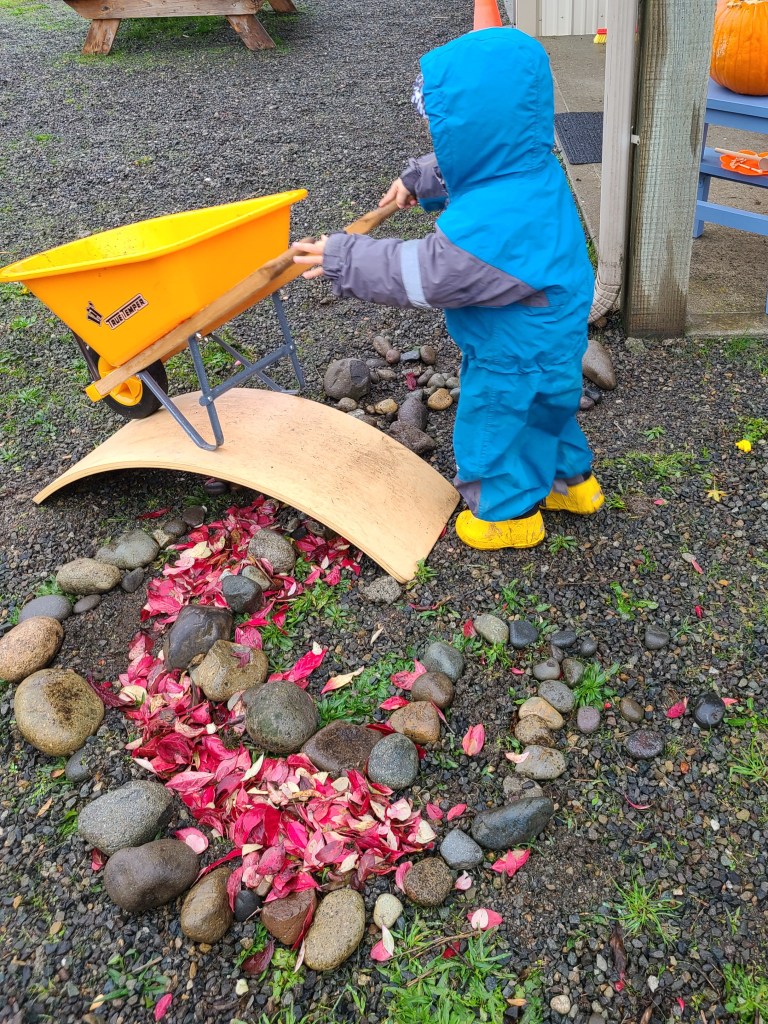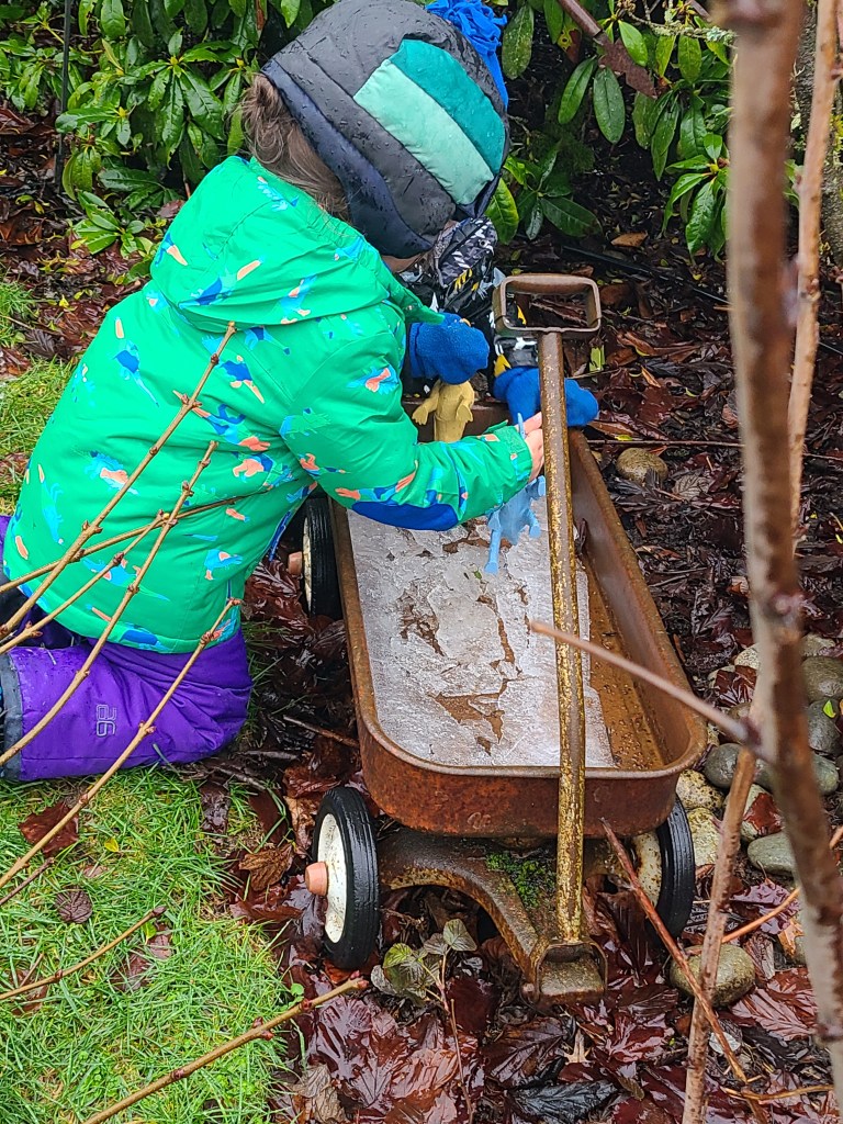 But let’s be honest – around October: as the north wind turned cool and rakes and wheelbarrows were in style, I was frantically brainstorming, researching, and hoping fervently we weren’t making a huge mistake. A native of Chicago, I’m weary of cold weather, and I knew it would be my own resilience as well as the students’ that would be strengthened in the coming months. But I pushed onward, dedicated to my families and inspired by the indigenous communities who have practiced outdoor education since time immemorial on these same lands. I was also connecting with an international community of nature preschools, and many were thriving in areas that remain well below freezing temperatures for weeks at a time.