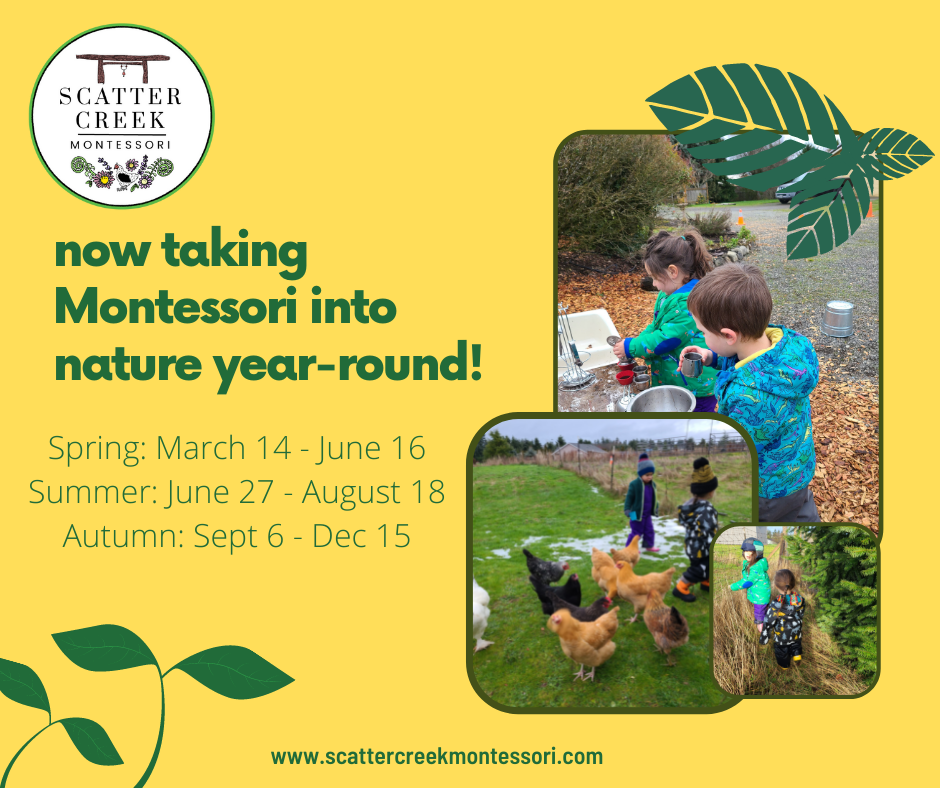 We are excited to announce we are now following a year-round school model, with 46 weeks on, 6 weeks off (breaks spread throughout the year). We believe a year-round model allows young students to form the true peer community they crave. It will also allow learning to build organically, without disruption. The changing seasons is all the dynamic change our young students need.